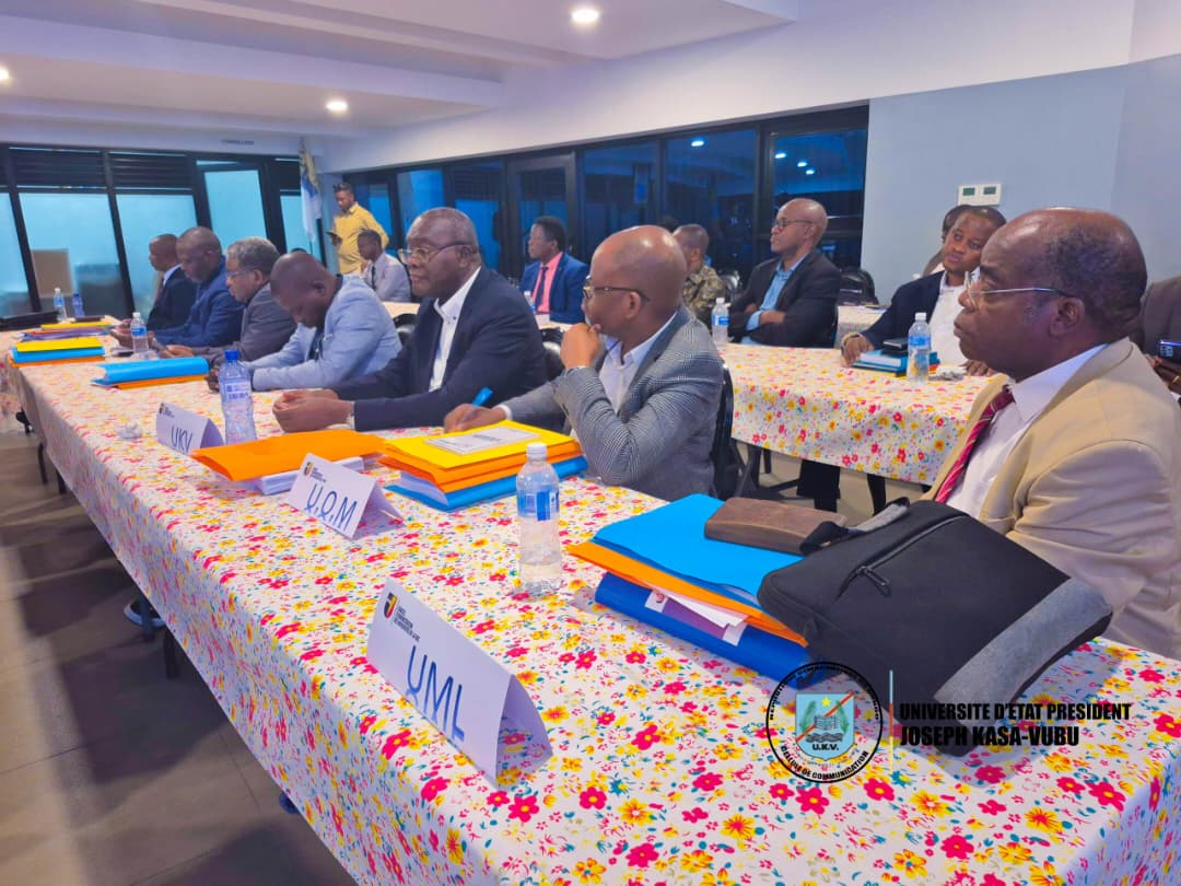 La 48ᵉ session du Conseil d’administration des universités de la République Démocratique du Congo s’est tenue à l’Université Pédagogique Nationale (UPN) à Kinshasa à partir du jeudi 18 décembre 2025. À cette occasion, le Professeur ordinaire Abbé Darius Bamuene Solo, Recteur de l’Université d’État Président Joseph Kasa-Vubu (UKV), a pris part aux travaux aux côtés des responsables académiques des différentes institutions d’enseignement supérieur du pays. Cette session avait pour objectif de définir et d’harmoniser les politiques essentielles au bon fonctionnement de l’Enseignement Supérieur et Universitaire en RDC.